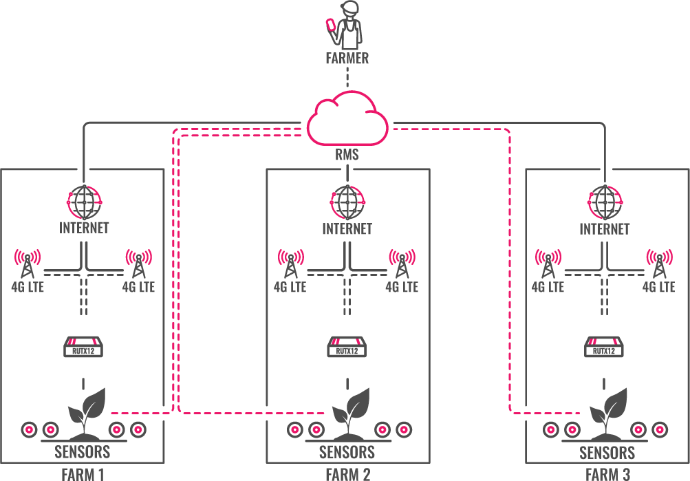 Employs direct routing techniques to streamline data transmission, bypassing congested networks and enhancing the speed and reliability of information flow critical for timely agricultural decisions.