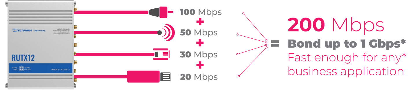 Combine LTE, 5G, Wi-Fi, satellite, and fibre into a single aggregated data stream for superior speed and reliability.